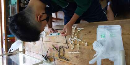 間もなく沖縄体験活動も終了です。たくさんの沖縄土産を自分で作ることができました。