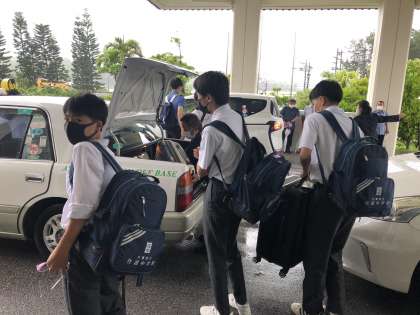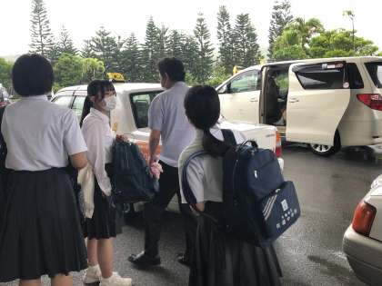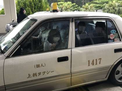 1つの班が2台のタクシーに分乗して、自分たちで決めた場所に出発しました。