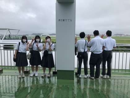 タクシープランで嘉手納基地を選んだ班は5班あります。広大な敷地のある嘉手納基地を展望台から見ながら、改めて沖縄の抱える基地問題のことを考えたと思います。