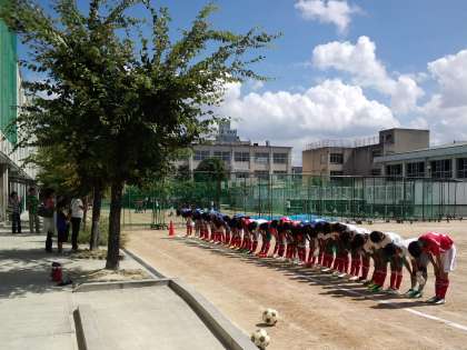 19日(月)サッカー部は、秋季総合体育大会中央大会の出場をかけて予選トーナメントの決勝戦を戦いました。対戦相手は大阪市立茨田北中学校で、アップの段階からお互いに気合の入った雰囲気でした。