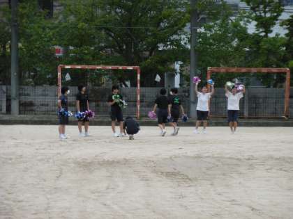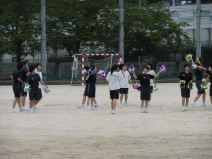 3年生女子によるダンス委員が午後から活動していました。今日はグラウンドでBGMを流しながら、立ち位置を確認していました。本当に楽しそうでした。
