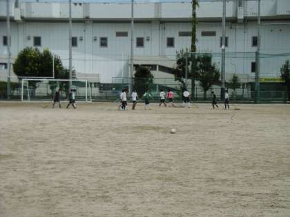 グラウンドのラグビー部とサッカー部の様子です。サッカー部はグラウンド整備をしていました。
