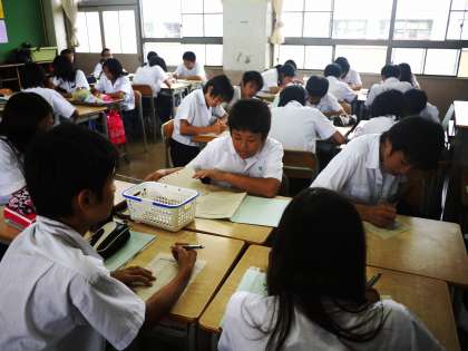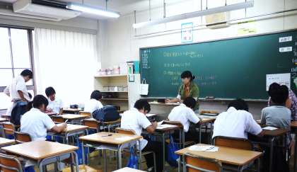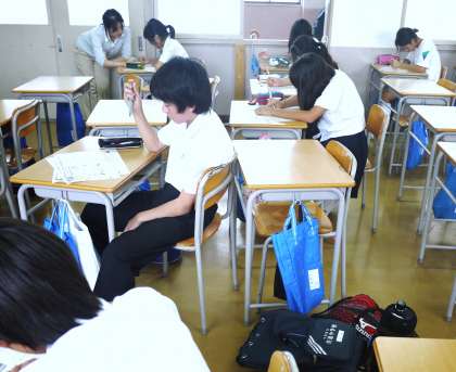 終礼時の学習、1年生も軌道に乗ってきましたね(写真上)。