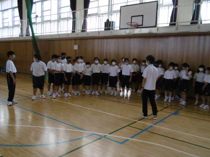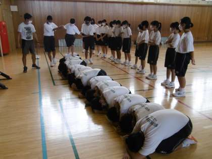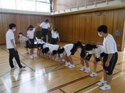 体育大会の学年種目の練習をしていました。男女仲良く、話し合いながらの練習でした。体育大会当日を楽しみにしています。クラスの団結を見ている人に是非、伝えてください。