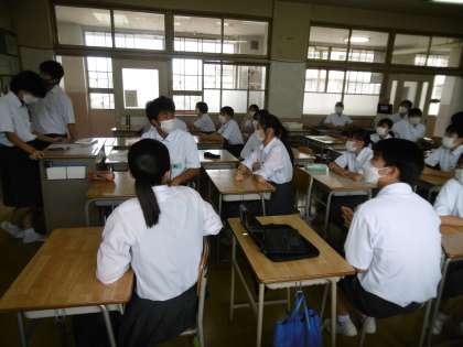体育大会で自分の出場する種目について、話し合いをしながら仲良く決めていました。教室中に聞こえる生徒同士の拍手が素晴らしかったです。写真は上から2年3組、2年4組の順番です。