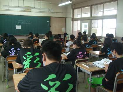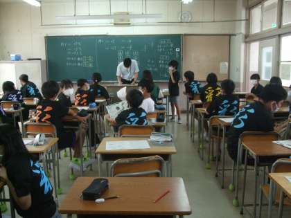 写真は、数学と体育の授業の様子。