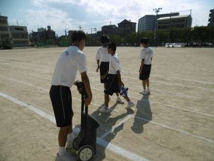 午後から暑い中、生徒会役員、美術部、放送部、吹奏楽部、陸上部、バレー部、委員長、体育委員、保健委員、美化会員、図書委員、校風委員の子どもたちが体育大会の予行準備をしてくれました。本当にありがとう。