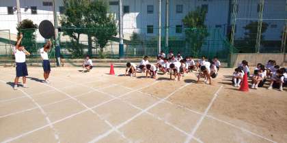 100m走、60m走の様子です。今日は第一走者のみの競技ですが、どの生徒も全力で参加をしています。感心するほどです。