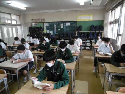 朝の読書もいつも通りです。さすが住中生です。写真は上から3年3組、2年3組、1年3組です。