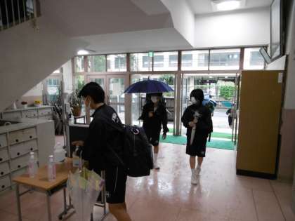 時間通りに生徒は登校しました。27日(火)の体育大会に向けて、子どもたちの気持ち(モチベーション)づくりをもう一度、各学級、各学年で月曜日に行っていきたいと思います。