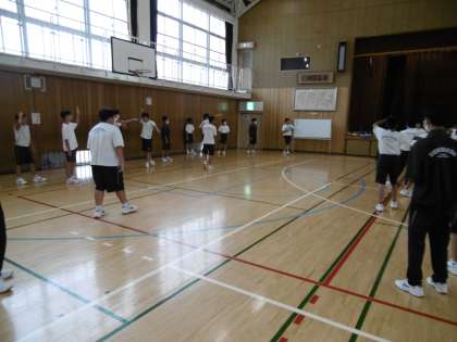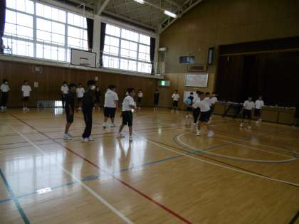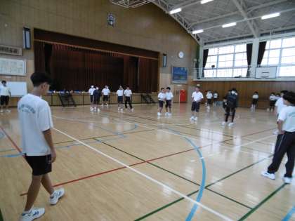 写真は3年3組・4組の男子体育です。体育大会中止ということもあり、今日は男女とも体育館でドッジボールを怪我に気をつけて行っていました。