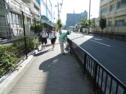 環境整備員さんが正門前をきれいに掃除をしてくださっていました。いつもありがとうございます。