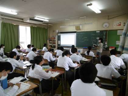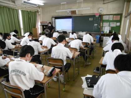 写真は上から2年1組(国語)、2年2組(技術)、2年3組(数学)です。
