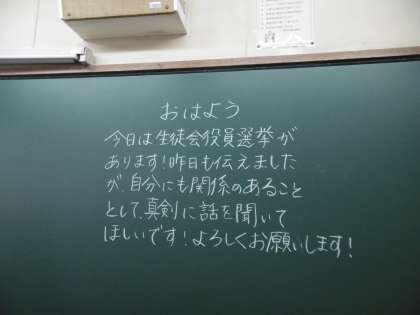 今日は後期の生徒会役員選挙があります。その選挙に向けてのメッセージが書かれていましたので紹介します。