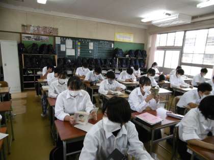 今日も朝の10分間の読書で一日をスタートしました。写真は上から3年3組、2年3組、1年3組です。読書の秋です。できる限りたくさんの本に出合ってほしいものです。
