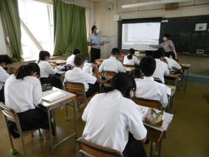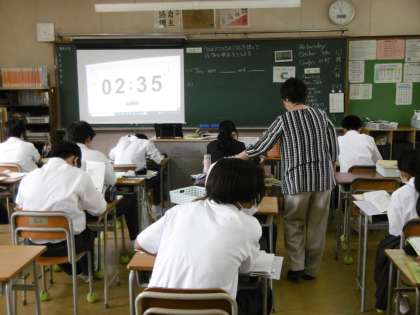 AET(英語実習助手)とともに「コラムを読んで段落ごとに要点をまとめる」という授業でした。
