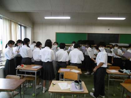 合唱コンクールに向けて、パート別に分かれて練習をしていました。歌声のレベルの高さに驚きました。とても上手に歌うことができていました。