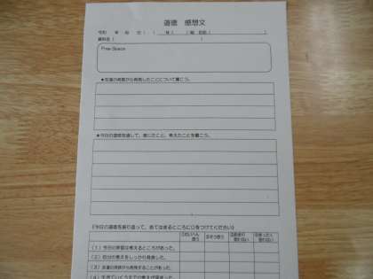 写真は上から3年3組、3年4組です。今日は副担任が授業を行いました。3組の資料名は「ライバル」で、資料を通して心から信頼できる友だちのよさや大切さに気付き、道徳的実践意欲を培うが授業のねらいでした。4組の題材名は「元さんと二通の手紙」で、資料を通して法やきまりの意義を理解し、規律ある安定した社会の実現に努める道徳的態度を養うが授業のねらいでした。全学年、全学級で統一したワークシートを使用しています。