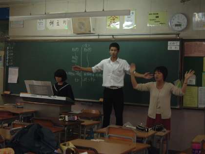 写真は3−1体育館での練習風景と3−3教室での練習風景です。(奥)
