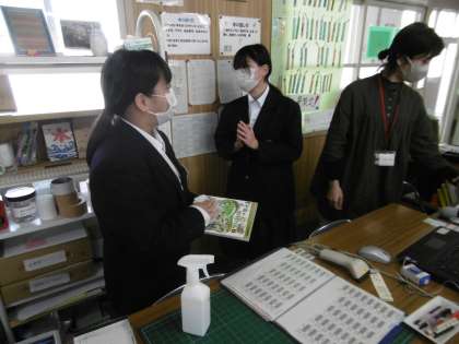 当番の図書委員が返却された本の消毒をしていました。貸し出し業務もスムーズに行われていました。図書館が好きという生徒も増えました。