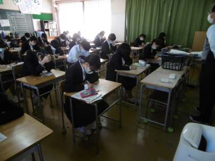 小テストをしていました。今週の11日(金)に期末テスト範囲表を全学年で配付予定です。