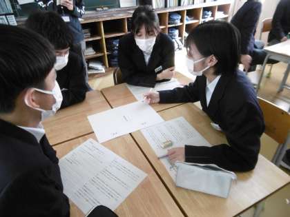 学習内容は「人が大切にされる未来を! 〜相手も自分も認め合いながら、自分はどのように生きるか?〜」です。「ふつう」という言葉にひそむものについて、学習班でワークシートを使って話し合いました。人権問題啓発ポスターを作成し、11月30日(水)には講師をお招きして、講演をしていただく予定になっています。