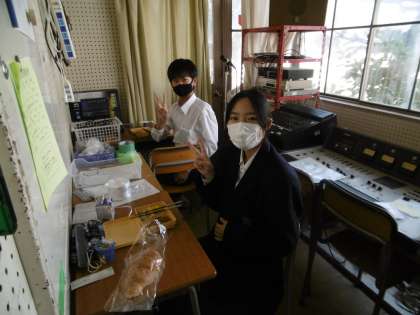 写真2枚目は、今日のお昼の放送担当(放送部)の生徒です。いつも仕事を完璧にこなしてくれます。