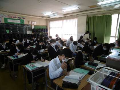 どちらの授業もプリント学習でした。クラス全員が静かに集中して問題を解いていました。