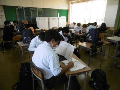 二者懇談の時間を有効活用して、1年生の補習授業が行われていました。真剣さが伺えました。