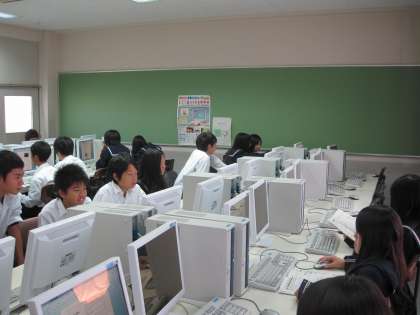 さすが今の中学生、先生の指示のもと手際よくパソコンを操作して作品を仕上げていきます。
