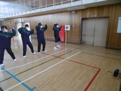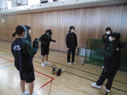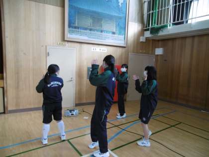 創作ダンスに取り組んでいました。自分たちで考えた振り付けを音楽をかけながら、練習していました。みんなが笑顔でした。