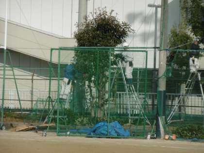 昨日から始まった樹木の剪定作業は2日目になりました。大東市シルバー人材センターの方がグラウンド北側の樹木の剪定作業をしてくれました。作業は今週末まで続きます。