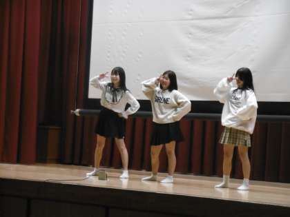 舞台発表あり、全員での競技ありでとにかく大いに盛り上がっていました。進行した委員長会の司会は抜群でした。写真は舞台発表で、歌やダンスを披露してくれた生徒たちの様子です。