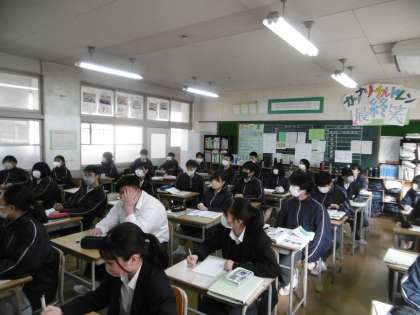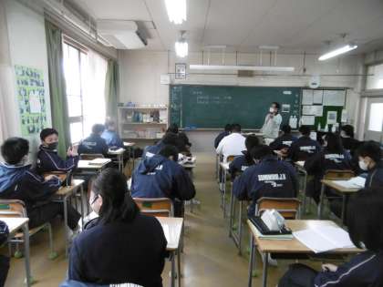 「人間活動と水をめぐるつり合い」が学習単元でした。先生からいろんな事例の話が出て生徒は興味津々のようでした。