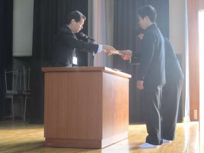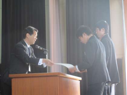 朝礼では講話とともに部活動(卓球・相撲)の伝達表彰を行いました。