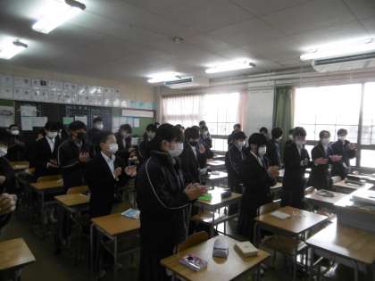 写真は1年2組です。朝の読書のあと、全員が姿勢を整え、大きな声であいさつをしていました。担任の先生ができていたことを褒めると自然に拍手が起こっていました。朝のうれしい一コマでした。