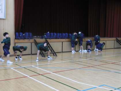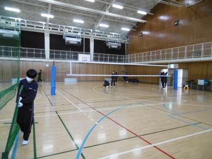 練習が始まる前の様子です。時間を無駄にせず、効率よく全員が動くことができていました。写真は上から、バレー部、男子バスケットボール部です。