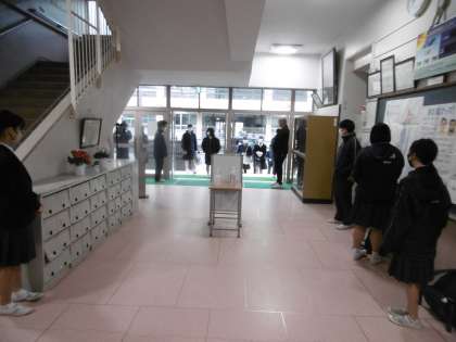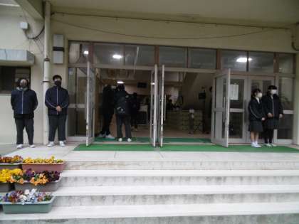 生徒会役員と校風委員によるあいさつ運動が行われていました。「あいさつは安心感のプレゼント」が本校の合言葉になっています。