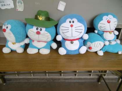3年学年職員室前に飾られているドラえもんの人形です。毎日、人形の位置を変えて飾っています。今日は特に素敵に飾られていたので、写真を撮ってみました。