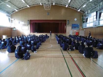 明日の入試に備えて進路指導主事の先生から注意事項などの説明がありました。どの生徒も表情は真剣そのものでした。今日は明日の持ち物を確認したら、早めに寝ましょう。明日は6時30分には学校に職員が待機しています。体調不良や困ったことがあれば、学校へ連絡してください。スミライトの健闘を祈ります。体育館後方には先日、74期生(スミライト)へプレゼントされただるまが飾られていました。受験のない生徒は2限後、下校となります。
