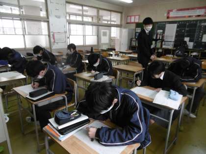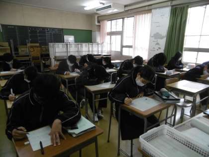 特別選抜用対策プリントをしているところです。物音ひとつしません。本当に静かな授業でした。