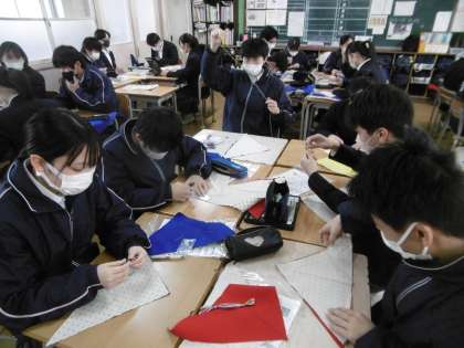 卒業前の最後の作品作りになります。動画を見た後に「箸入れ」の作成をしていました。素敵な作品が仕上がることを願っています。