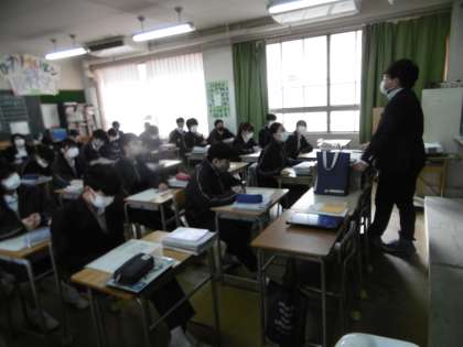 先週行われた私立高校等の入試を振り返っての話をしているところです。