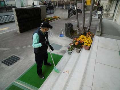 今朝の環境整備員さんの掃除の様子す。。職員玄関が見事なくらいきれいになっていました。職人技を感じるほどです。
