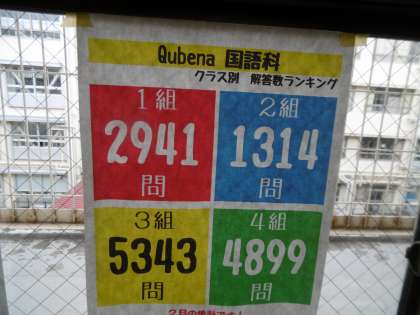 校外学習や入試に関すること、学習用教材(キュビナ)に関する掲示物が新たに作成されていました。1年後を見据えた毎日のちょっとした進路に関する意識が結果として大きく変わってきます。がんばれ! 75期生!