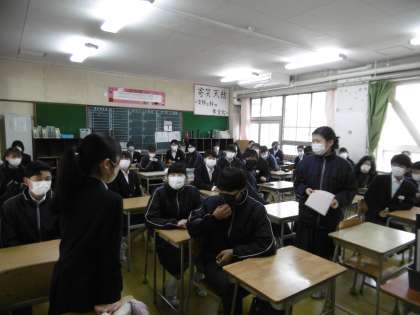 卒業を明日に控え、各クラスでレクレーションをして楽しんでいました。どのクラスも笑い声が廊下まで聞こえていました。