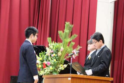 卒業生入場後、卒業証書授与を行いました。卒業式に臨む姿勢や所作は完璧でした。