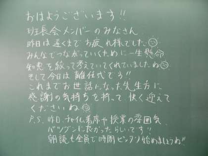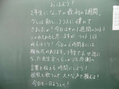 写真は上から、2年1組、2年2組です。素敵なメッセージを毎朝、欠かさずクラスの子どもたちに書いています。