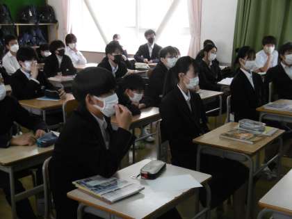 進路(高校受験)に関わる話を教科担当の先生から真剣に聞いているところです。進路に関する情報は、学校としても積極的に発信していきます。