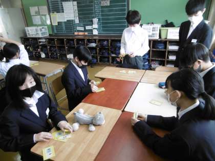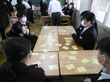 カードを使って、班ごとにゲーム形式で1年生の復習をしていました。笑顔あふれる授業でした。